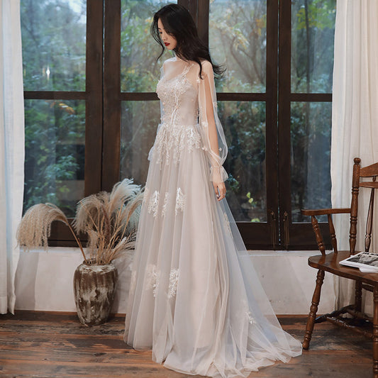 Long Sleeves Lace Tulle Wedding Dress A Line Long Prom Dress Formal Party Gown 318