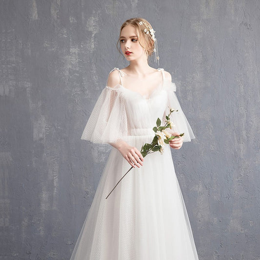 Sweetheart A Line Tulle Wedding Dress Spaghetti Strap Long Formal Gown with Train 309