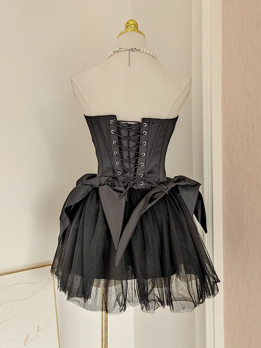 A Line Strapless Black Homecoming Dress With Bowknot J7549