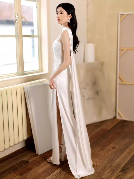 White Sheath Long Prom Dress Simple Wedding Dress J3186