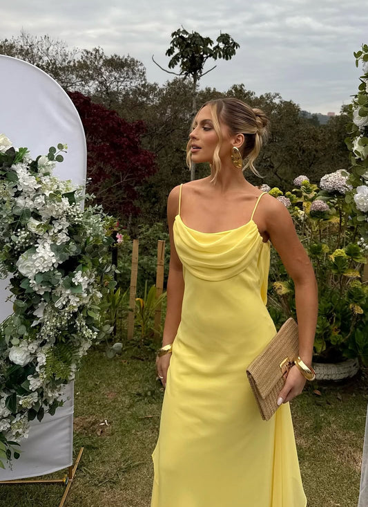 Yellow A Line Wedding Guest Dress Formal Evening Party Dress J7079