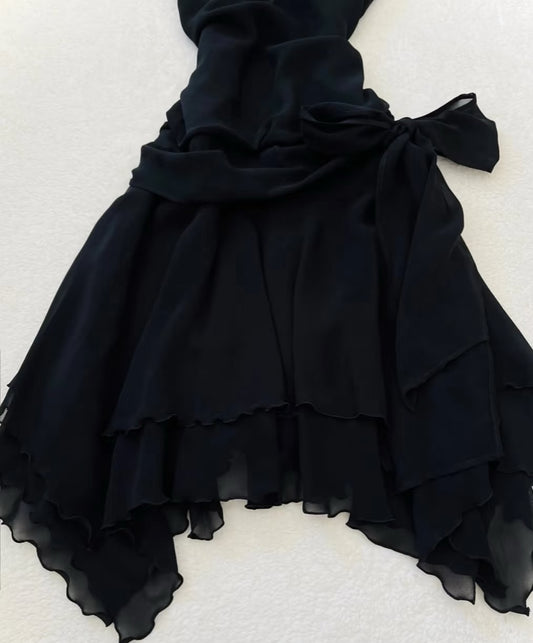 A Line Black Short Dress Chiffon Ruffle Homecoming Dress J6614