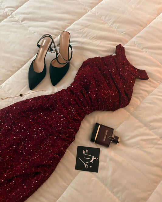 Burgundy Sequin Prom Dress Formal Evening Dress J9239