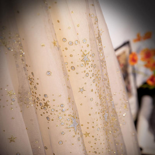 Champagne Mid Sleeves Long Prom Dress Shiny Tulle Evening Gown 230