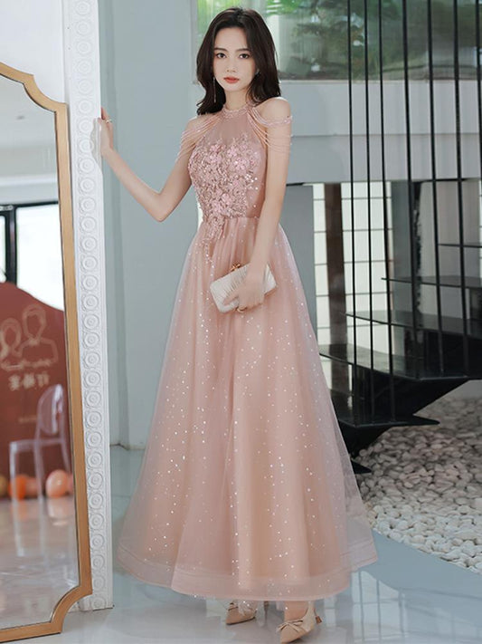 Pink Sweet Long Prom Dress Tulle Evening Dress 59