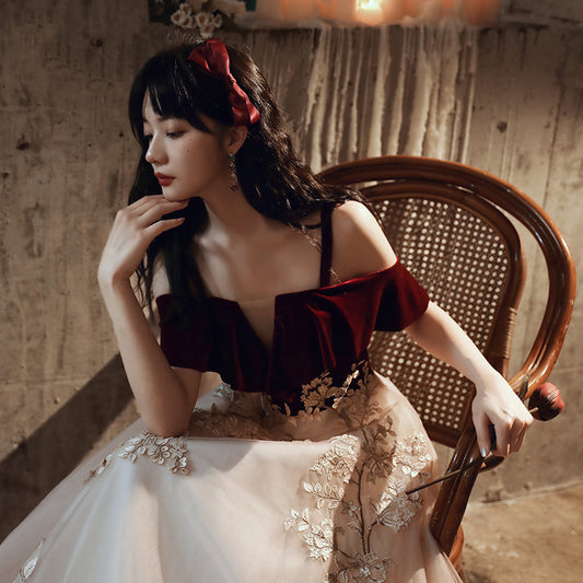 Velvet Tulle Long Prom Dress Lace Up Evening Dress 35