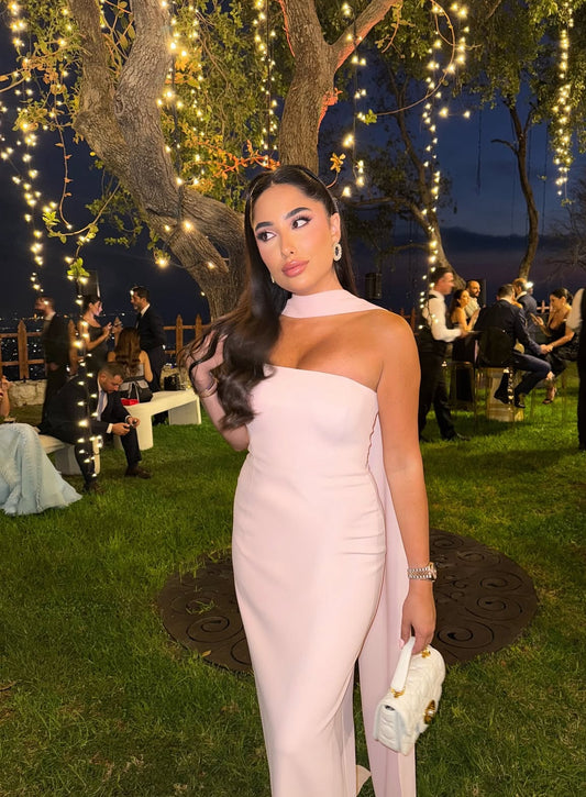 Strapless Pink Sheath Prom Dress Ruffle Wedding Guest Dress J7803