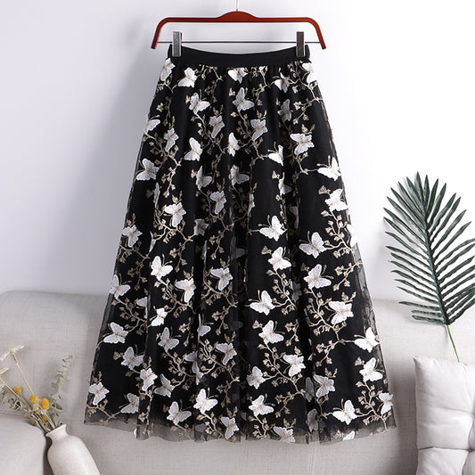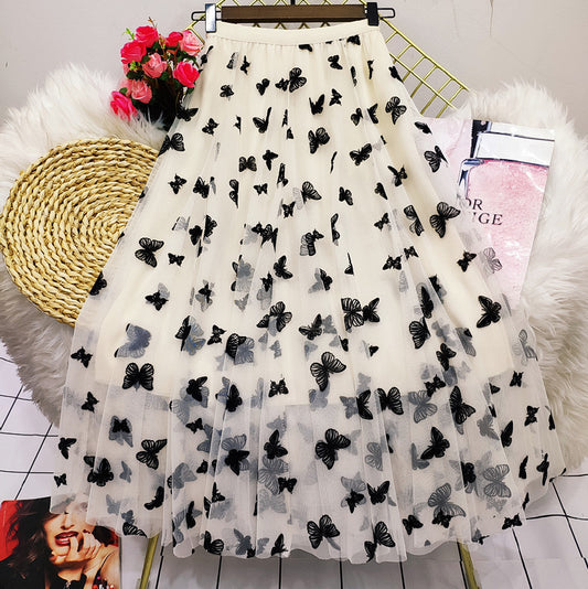 Butterfly Mesh High Waist Mid Length Skirt Long Skirt 739