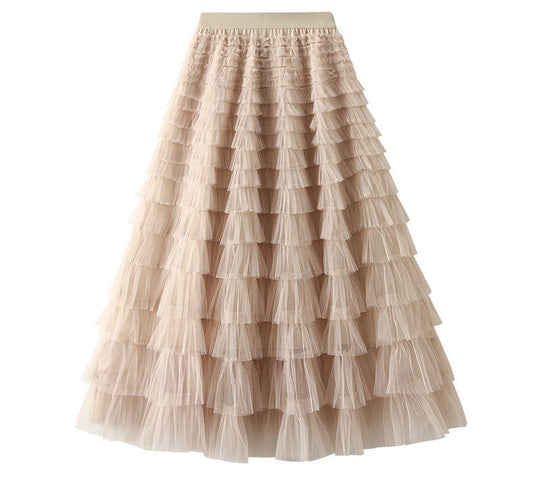 Irregular Mesh Skirt Women's Multi-layer Cake Skirt Fluffy Long Skirt Fairy Skirt 729