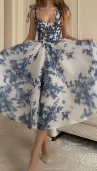 A Line Flora Printed Chiffon Prom Dress Homecoming Dress J7754