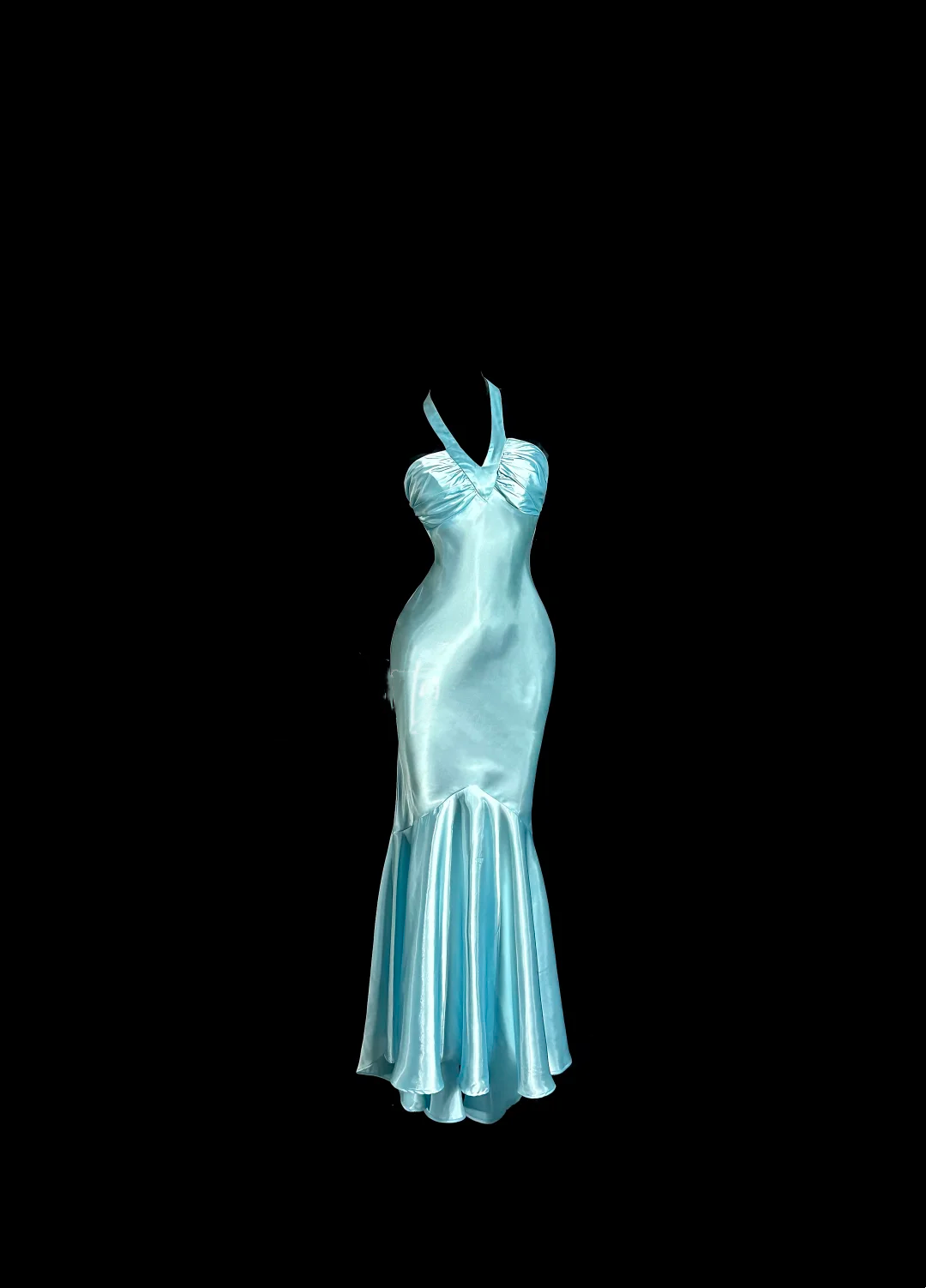 Halter Blue Mermaid Long Prom Dress Simple Formal Party Dress J8936