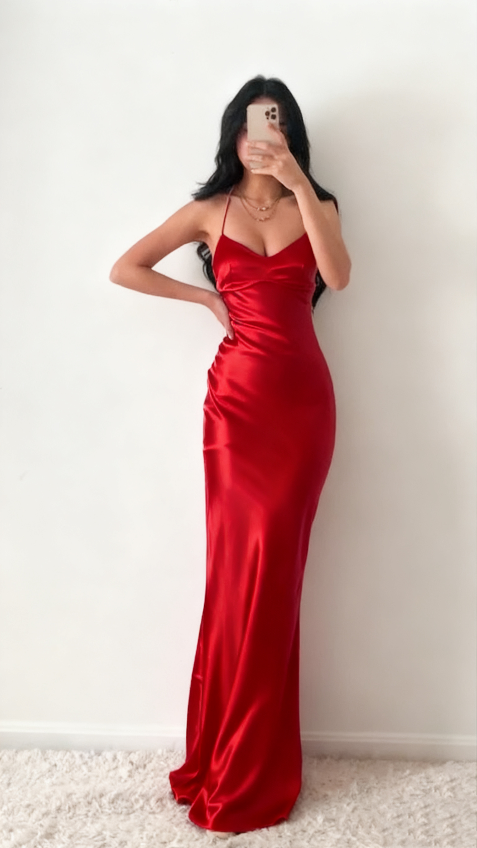 Spaghetti Straps Red Long Prom Dresses Sheath Evening Dress 2451
