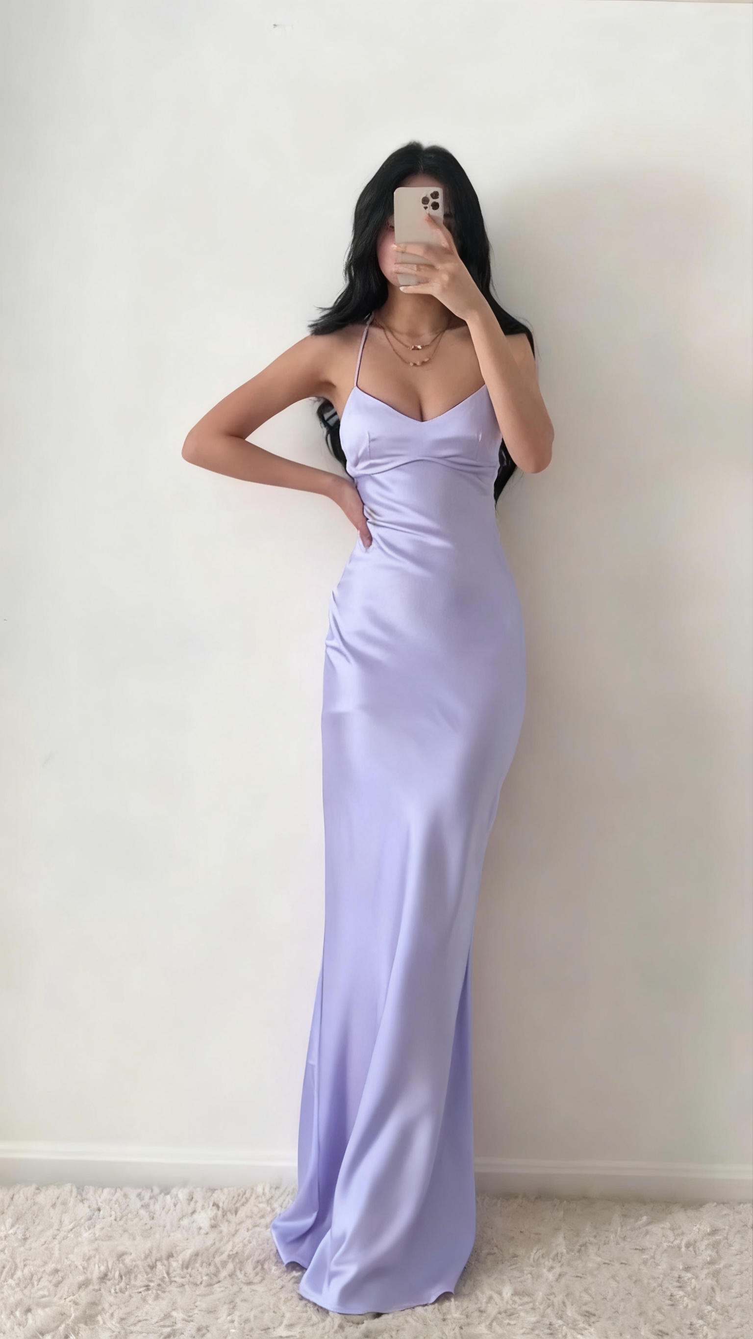 Spaghetti Straps Sheath Light Blue Prom Dress Formal Satin Party Dress 2492