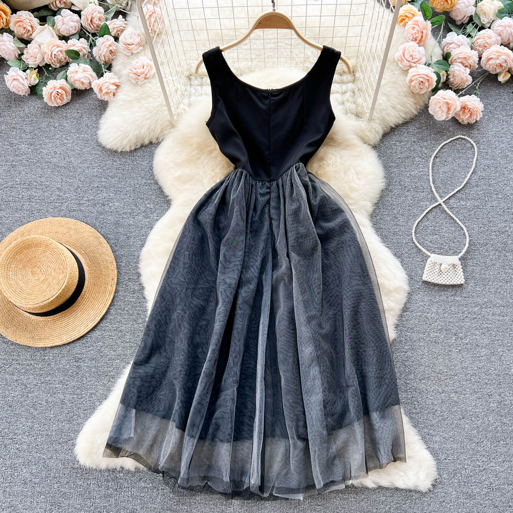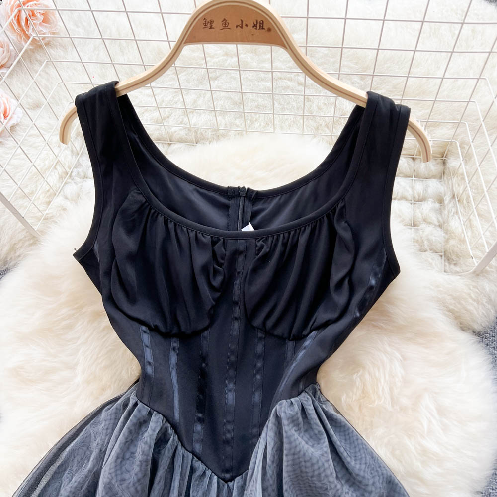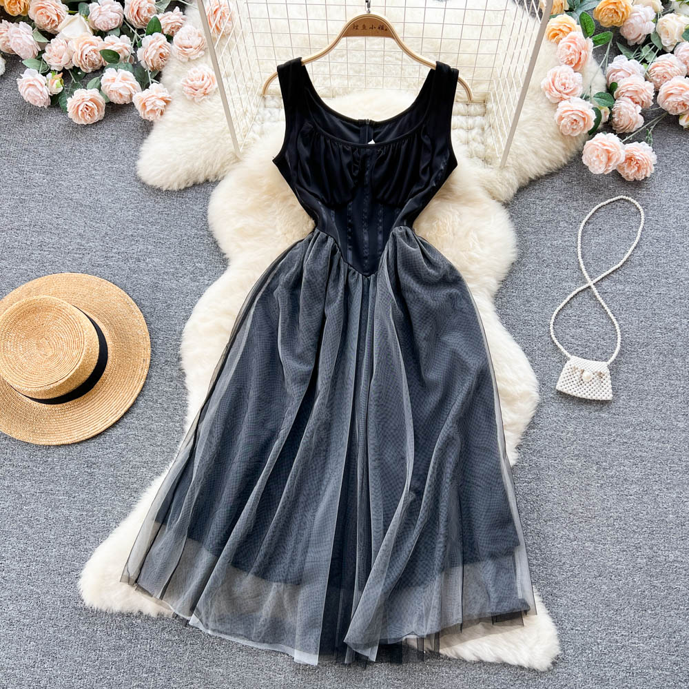 Sweet Spaghetti Strap Fairy Mid-Length Mesh Dress 841