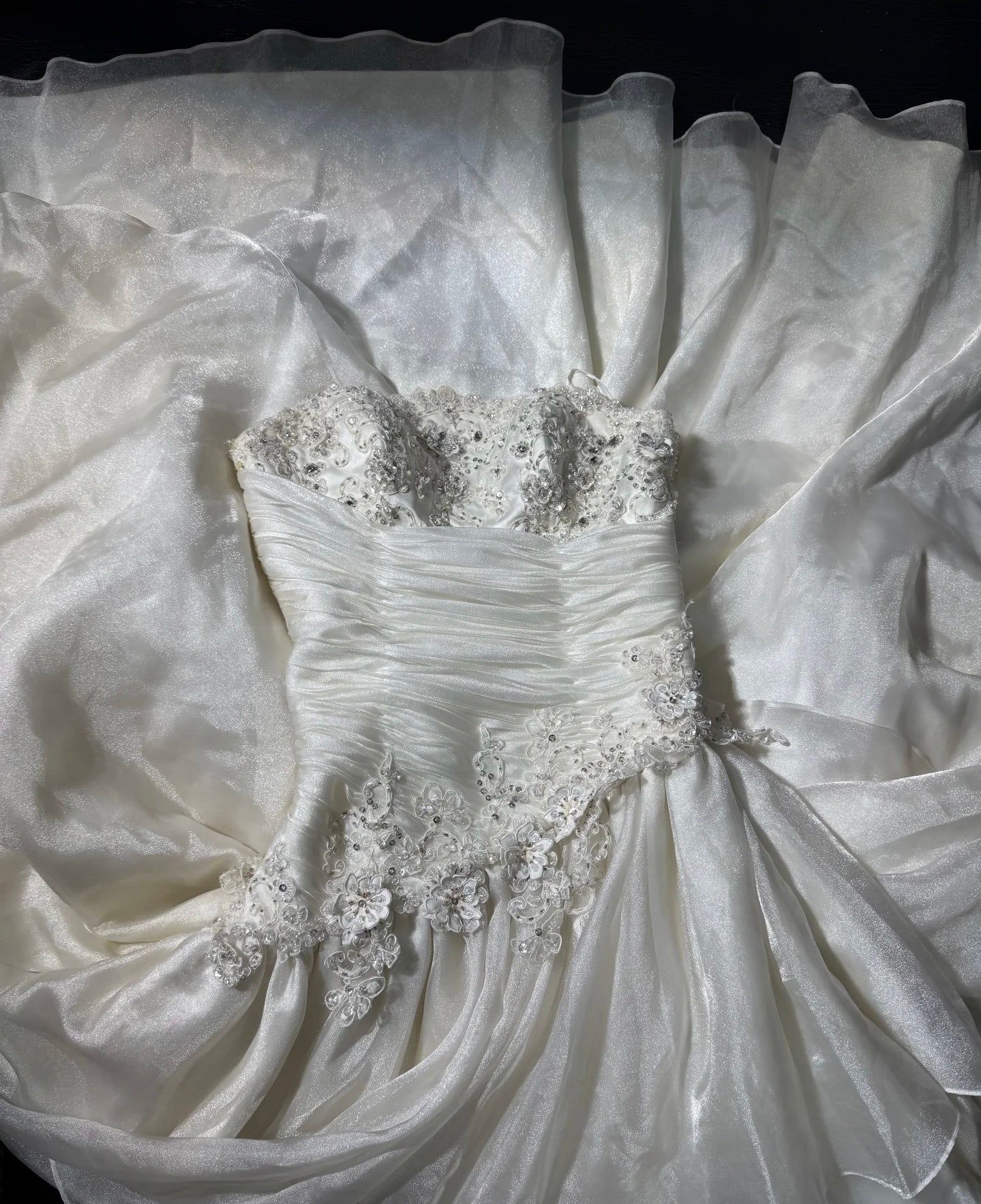 Strapless Ivory Tulle Wedding Dress Applique Elegant Gown For Bridal J8915