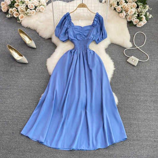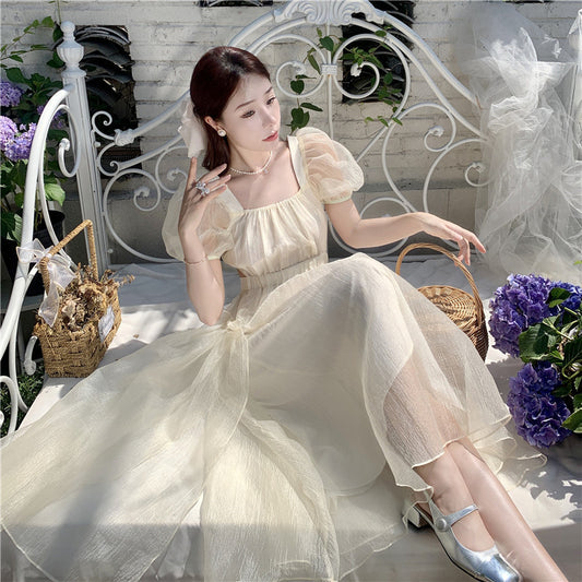 Robe de princesse féerique à col carré et manches bouffantes, couleur abricot français, nouvelle collection 2023, 394