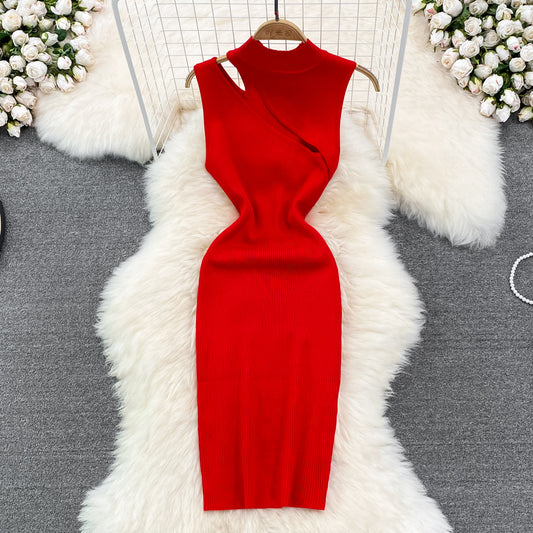 Robe sexy en tricot sans manches, col montant, épaules dénudées, slim, 2023 284