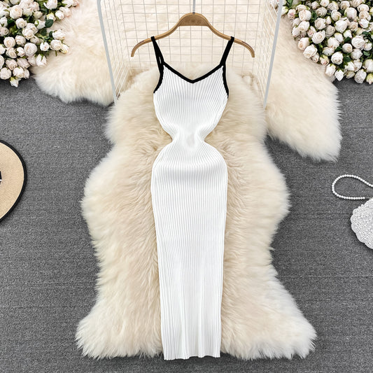 Robe élastique tricotée à bretelles spaghetti pour femme, nouvelle collection 2023, 285