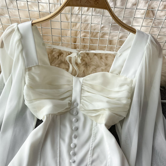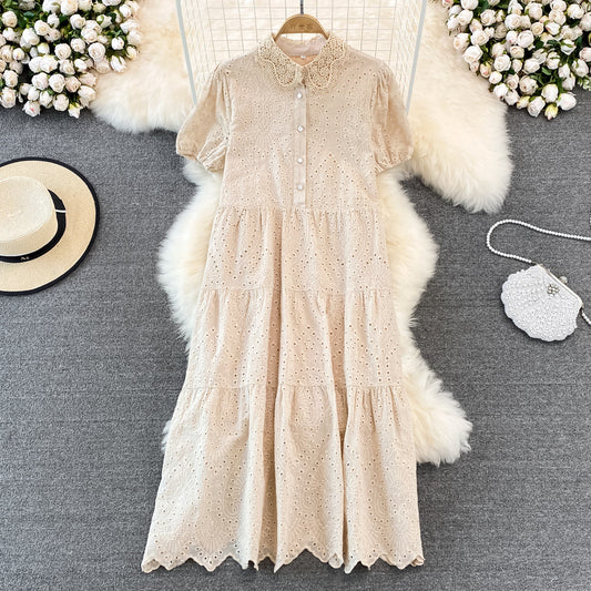 Robe longue élégante à col poupée et manches bouffantes ajourées, été 2022, 450