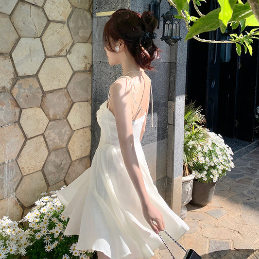 Robe d'été beige à bretelles spaghetti et nœud pour femme, nouvelle collection 2023, 387