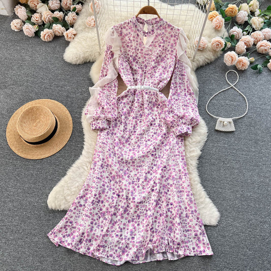 Robe fleurie 2023 pour femme, manches bouffantes, style sirène, jupe longue féerique 283