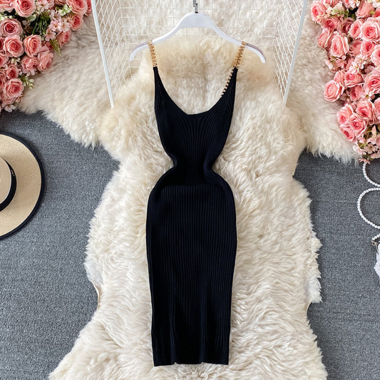 Robe fourreau tricotée à bretelles en chaîne, nouvelle collection été 2023, 435