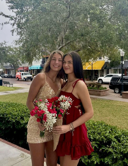Robe de soirée courte à paillettes rouges, coupe trapèze, tenue de bal, d'anniversaire, J7008