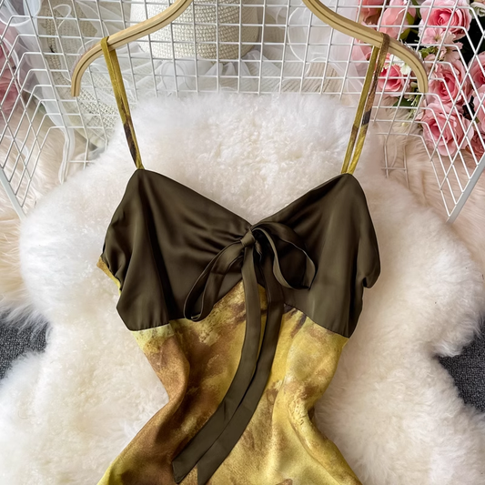 Robe d'été élégante à bretelles spaghetti de style français pour femme 1342