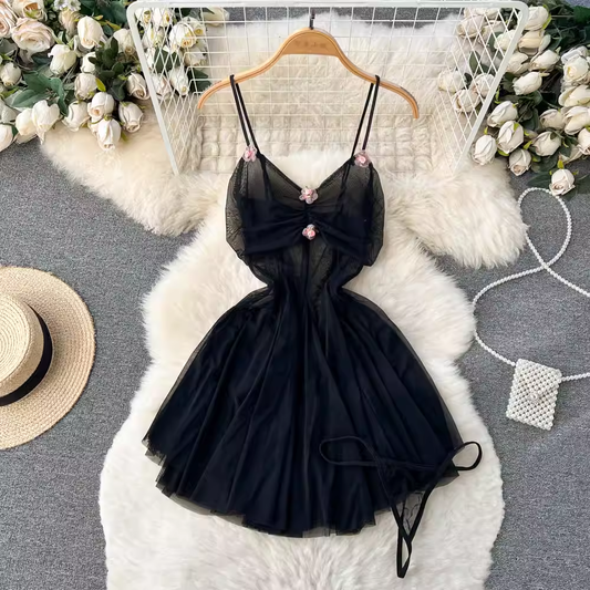 Robe de princesse duveteuse en mousseline de soie pour femme, jupe à bretelles, été 1194