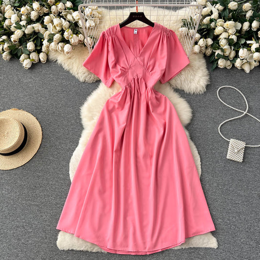 Robe d'été féerique à col en V pour femme, style français 276