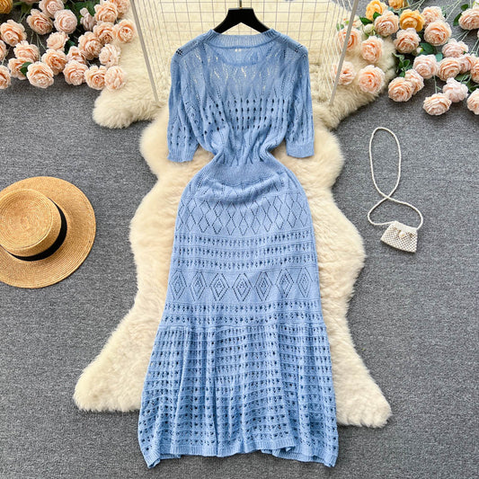 Robe d'été en tricot ajouré pour femme, ensemble deux pièces avec jupe à bretelles 477