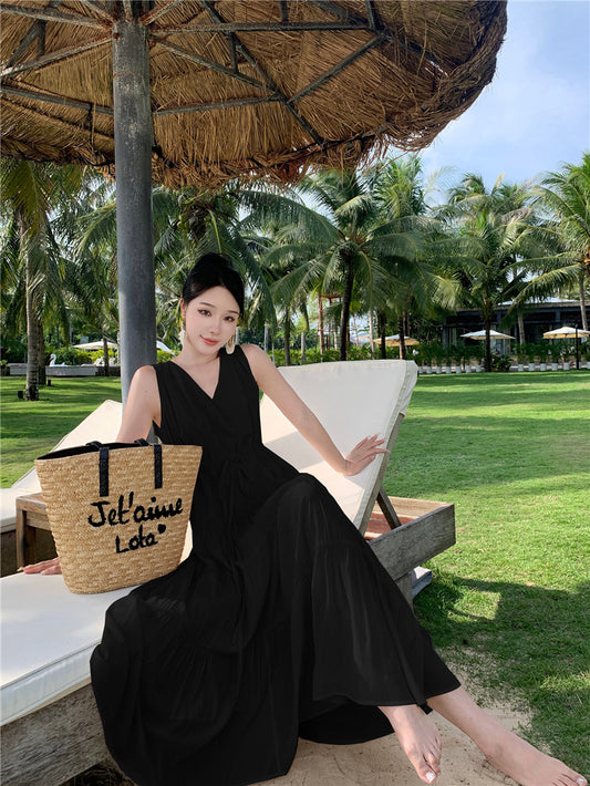 Robe de plage sans manches pour femme, douce robe française 380