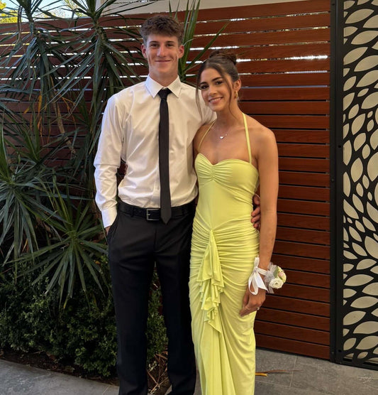Robe de bal sirène jaune en satin, robe de soirée J3958