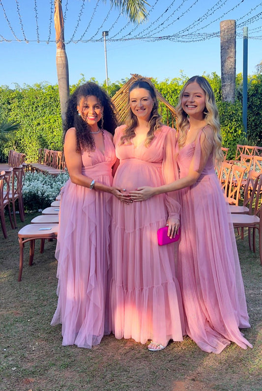 Robe de mariée longue en mousseline rose avec dos en V, élégante robe de demoiselle d'honneur J8823