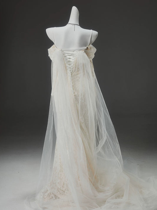 Robe de mariée sirène à épaules dénudées et manches longues en dentelle J8433