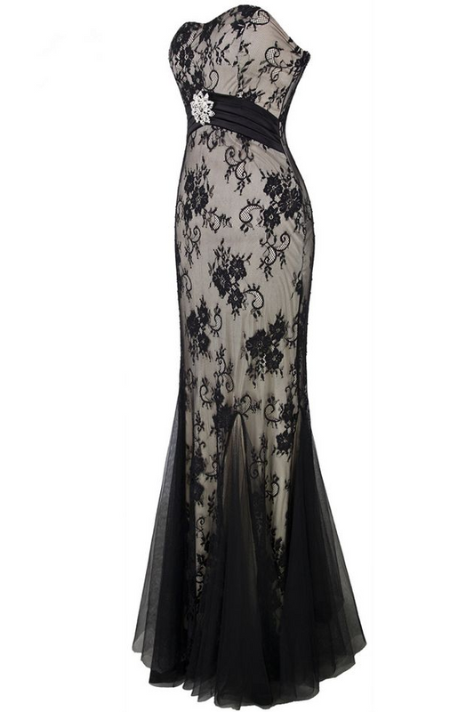 Robe de soirée longue sirène bustier en dentelle noire J8328