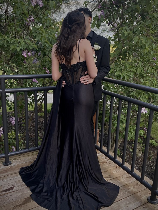 Robe de soirée fourreau noire sexy longue avec fente J8826