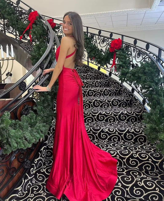 Robe de bal longue sirène à col en V profond et dos nu J2884