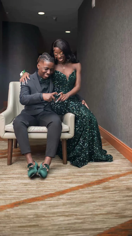 Robe de bal longue sirène à paillettes vertes et brillantes J2581
