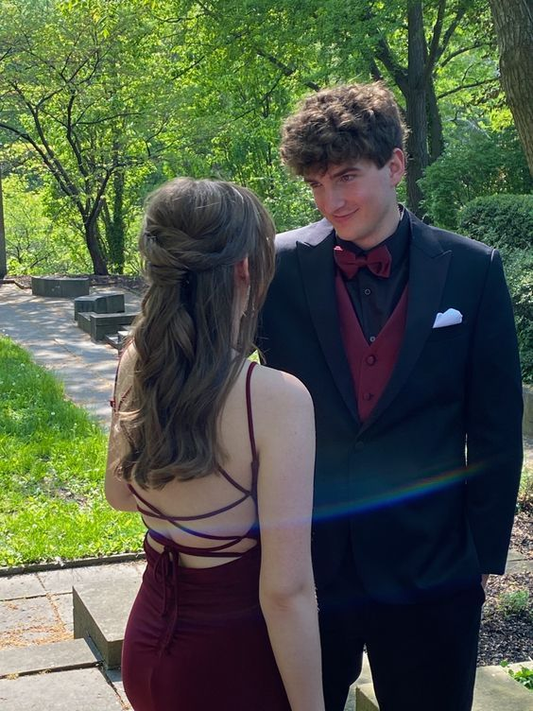 Robe de bal sirène bordeaux à col en V, longue et élégante, tenue de soirée 2503