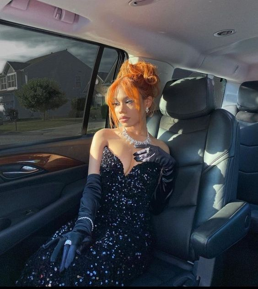 Robe de bal longue noire en velours à col sirène et décolleté en cœur 2532