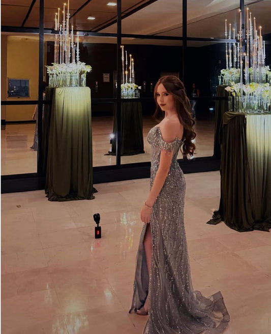 Robe de soirée fourreau noire sexy longue avec fente J8826