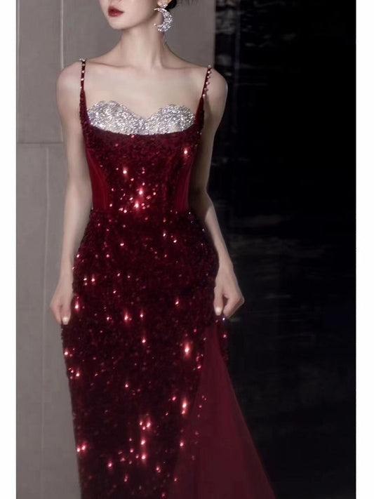 Robe de soirée à bretelles spaghetti et paillettes avec fente 1965