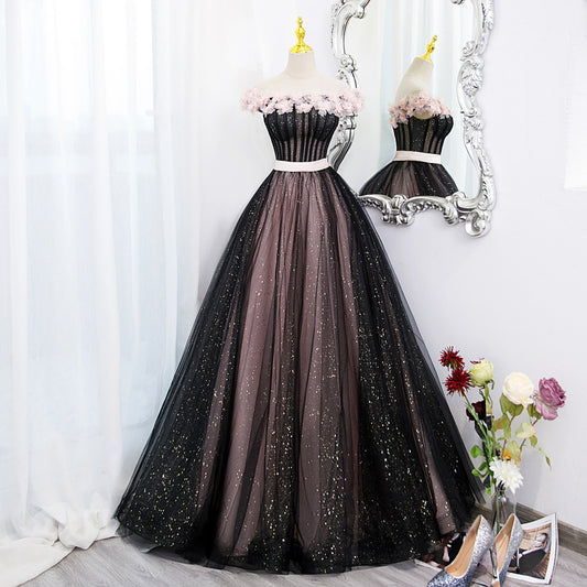 Robe de bal à paillettes et épaules dénudées, coupe trapèze, en tulle, tenue de soirée formelle 667