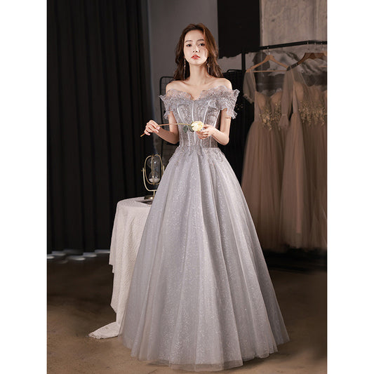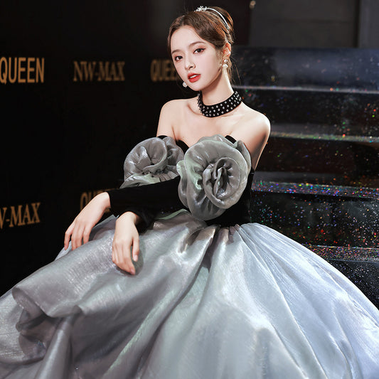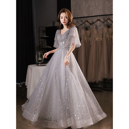 Robe de bal longue scintillante grise dégradée Robe de soirée trapèze 87