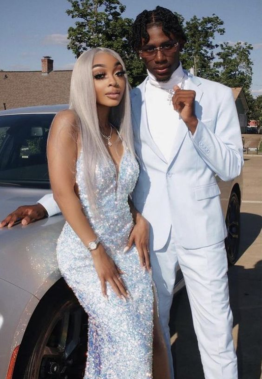 Robe de bal fourreau à paillettes violettes avec fente, robe de soirée formelle scintillante 2274