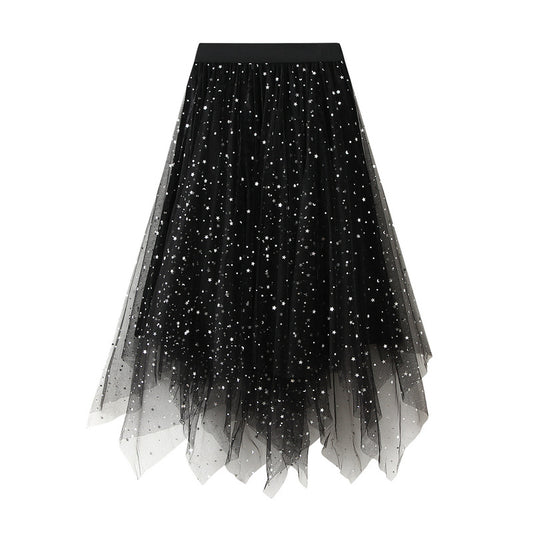 Jupe bouffante en maille scintillante, jupe mi-longue irrégulière 772