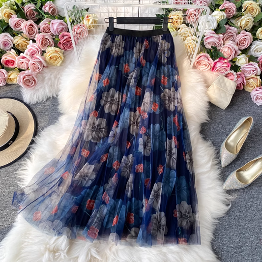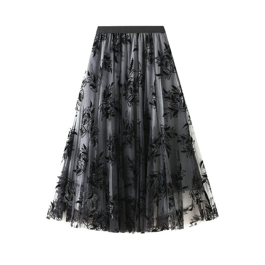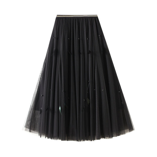 Jupe mi-longue en maille brodée de papillons, nouvelle jupe trapèze féerique taille haute, 765