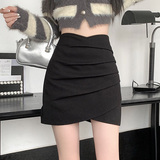 Jupe moulante en daim, jupe plissée irrégulière à fermeture éclair, 1975