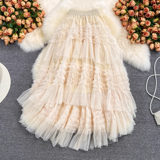 Jupe trapèze féerique, jupe trapèze mi-longue, jupe tutu taille haute en plumes 773